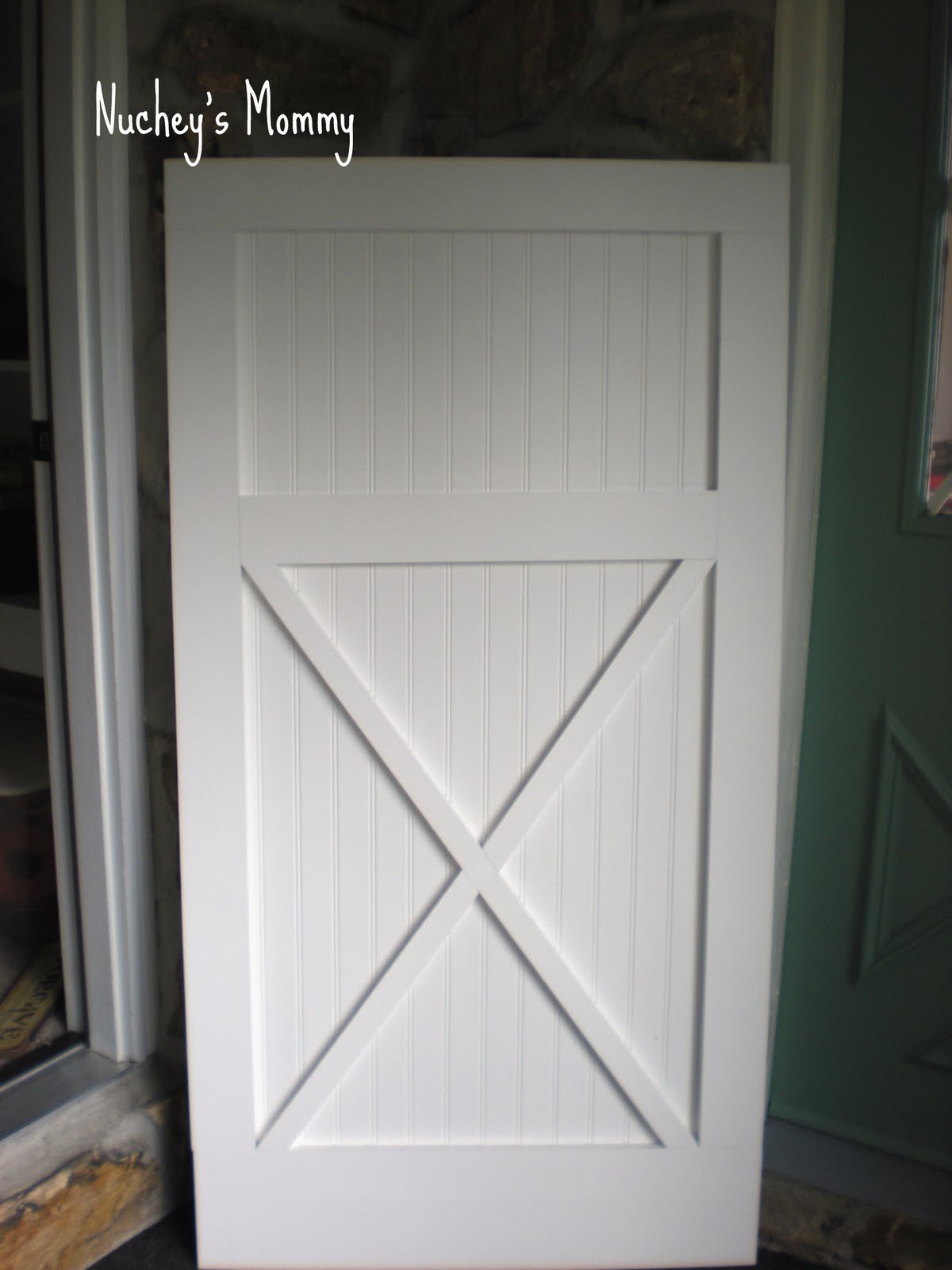 The barn style doors are coming along! They have been sanded, primed & painted white (BM decorators white) I haven’t decided if they will stay white or maybe a light gray color?