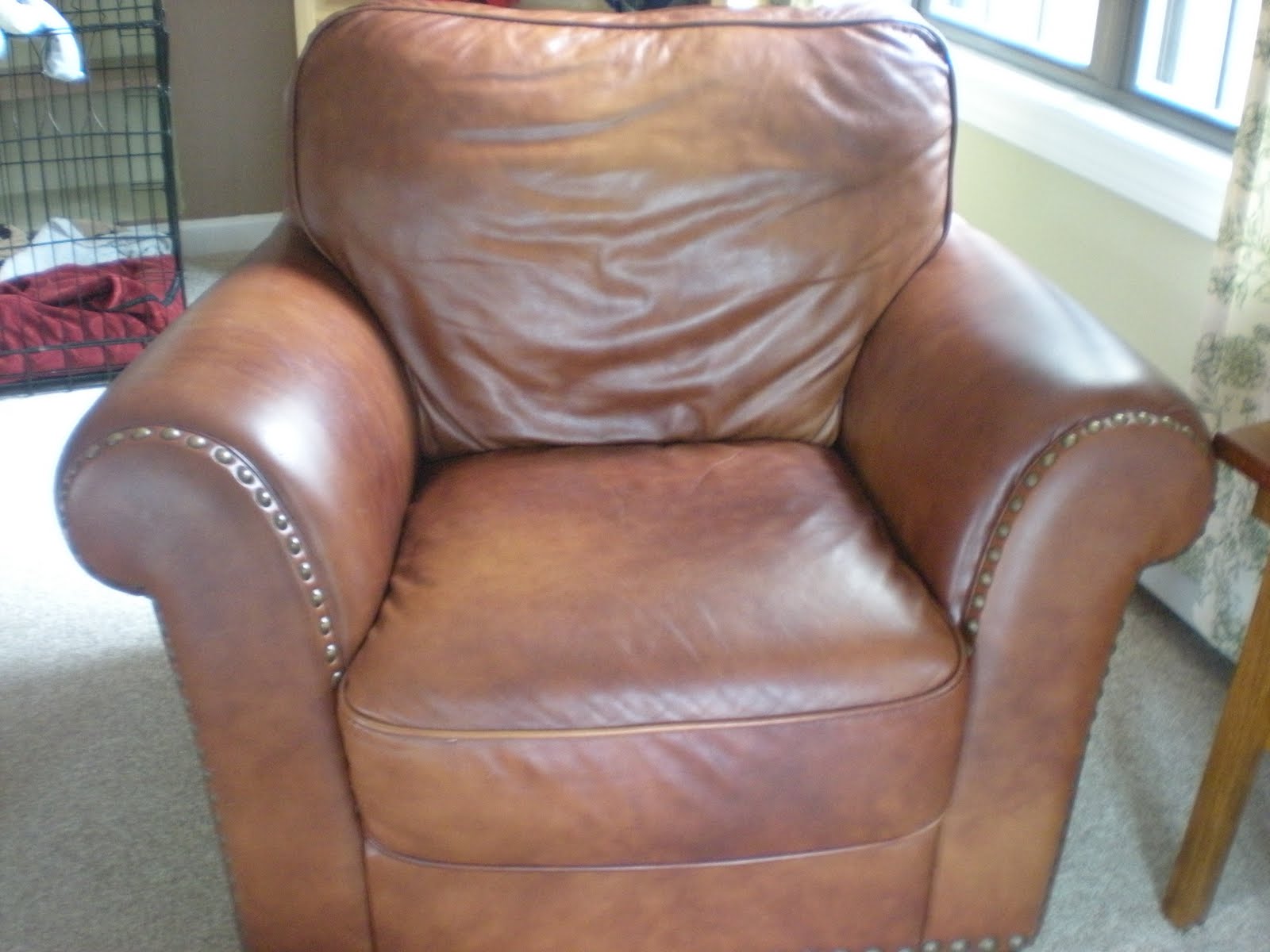 A couple weeks ago, I won a slipcover from the Nestofposies giveaway. At the time when I won, I had only been blogging for maybe a week and I was so excited when I won! Well, my free one (along with some others that I bought) arrived yesterday & I LOVE them! Uglysofa sent them & they are wonderful & fit fabulously! Yes, they are pottery barn (more than 50% off)! This is my leather couch & chair before (I like it ~ just wanted a change)